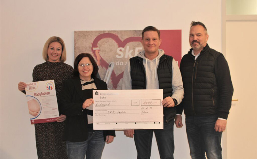 Wir bedanken uns beim Dachdecker-Einkauf Nordwest eG, Standort Bakum, der uns im Rahmen einer Spendenaktion zu Weihnachten einen Scheck in Höhe von 1000 € überreicht hat. Dieser Betrag kommt unserem Babylotsenprojekt zugute, welches auf Spendengelder angewiesen ist.